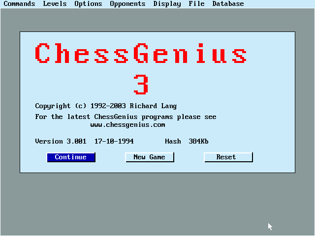 ChessGenius 3 was originally a commercial product, but author Richard Lang has declared the game freeware since. In the 90s, this version was considered one of the strongest-playing chess programmes of its time.