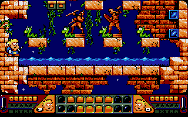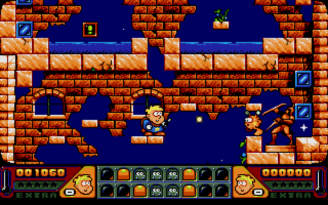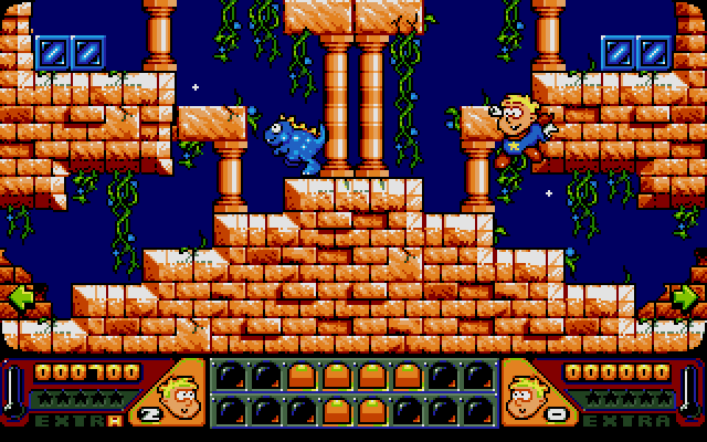 Magic Boy is a cute arcade puzzle-platformer where you control Hewlett the apprentice magician who accidentally released various monsters and must capture them and send them back to his master's basement. You need to first stun the monsters with your magic wand, then pick the monster and press the down arrow to drop it into the basement.